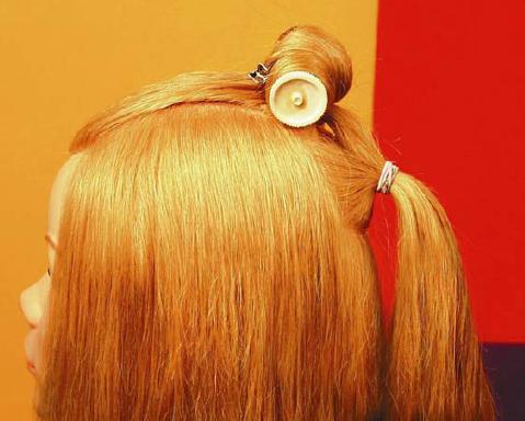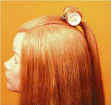 Отделите верхнюю половину второго хвоста и накрутите ее на бигуди аналогично второму шагу