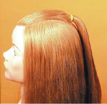 Отделите волосы наверху как показано на фото и сделайте хвост. Опустите хвост назад.