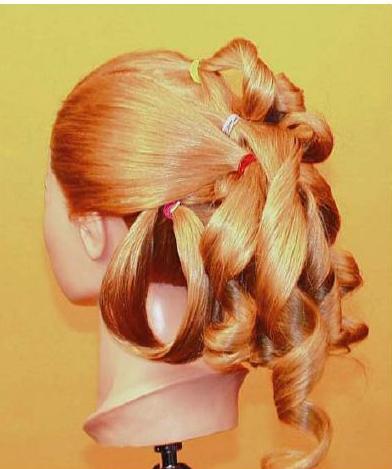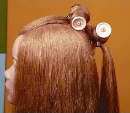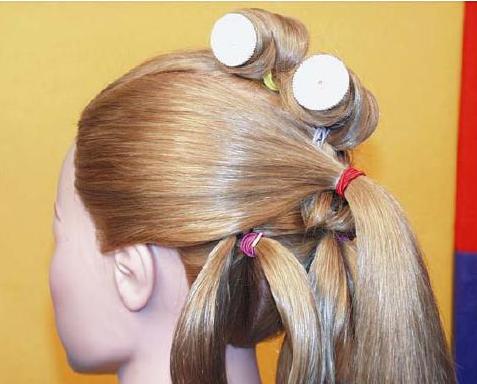Отделите верхнюю половину хвоста и накрутите на бигуди снизу вверх по направлению ко лбу.